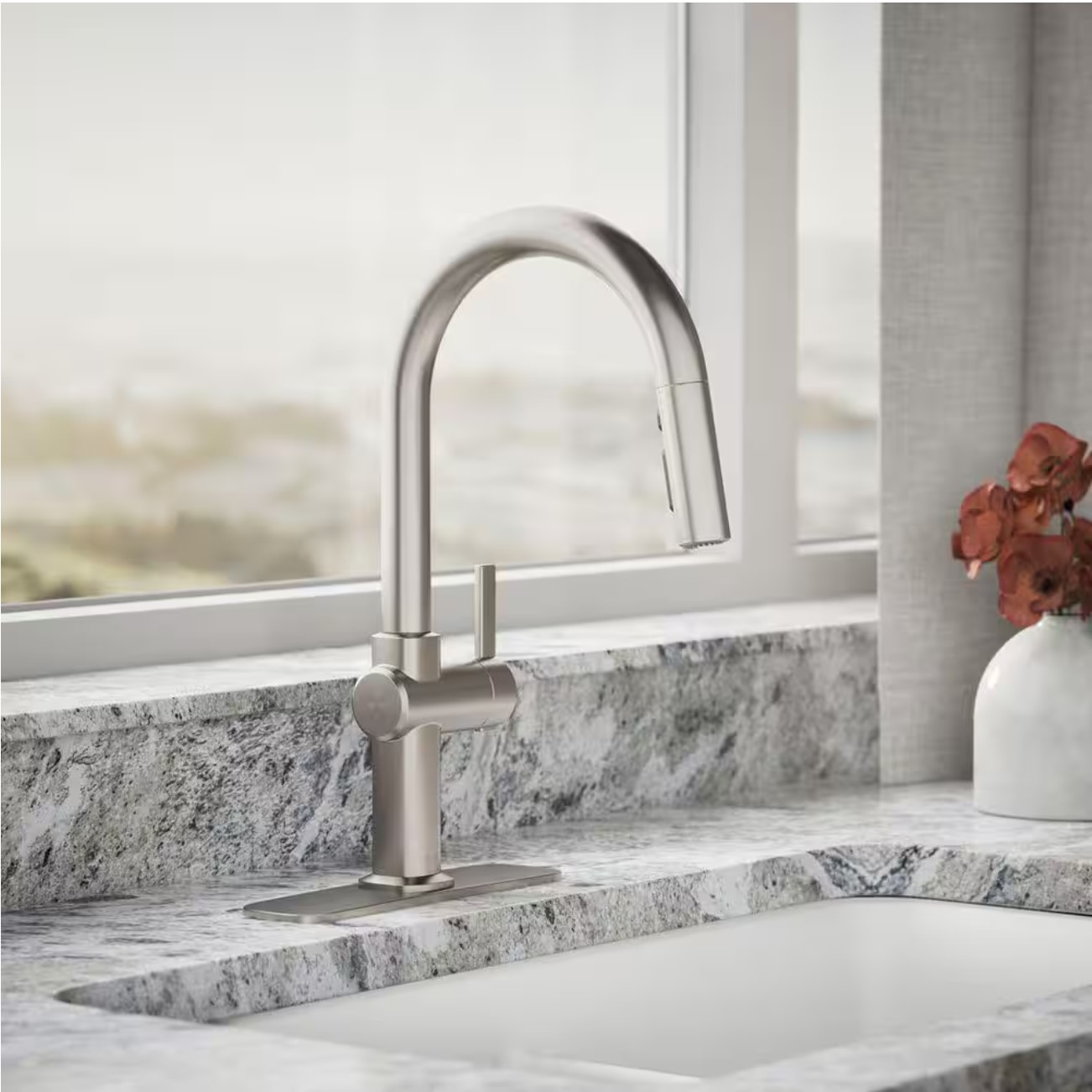 At the core of the Clarus faucet’s functionality is a versatile three-function pull-down spray head. The touch control switch allows seamless toggling between an aerated stream, a powerful ring spray, and Boost technology. The ring spray delivers forceful jets of water, perfect for rinsing off stubborn food residue or cleaning out the sink. Boost technology increases the water flow rate by 30% on demand, providing extra power when you need faster filling or enhanced cleaning performance—whether you’re using stream or ring spray mode.